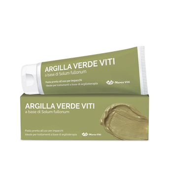 ARGILLA VERDE VITI è un prodotto con il 40% argilla verde micronizzata di origine minerale, tradizionalmente impiegata per trattamenti a base di argilloterapia. Grazie alla sua composizione, è caratterizzato da proprietà assorbenti, dermopurificanti, remineralizzanti e detossinanti, che aiutano a rivitalizzare la pelle e a promuovere una sensazione di benessere