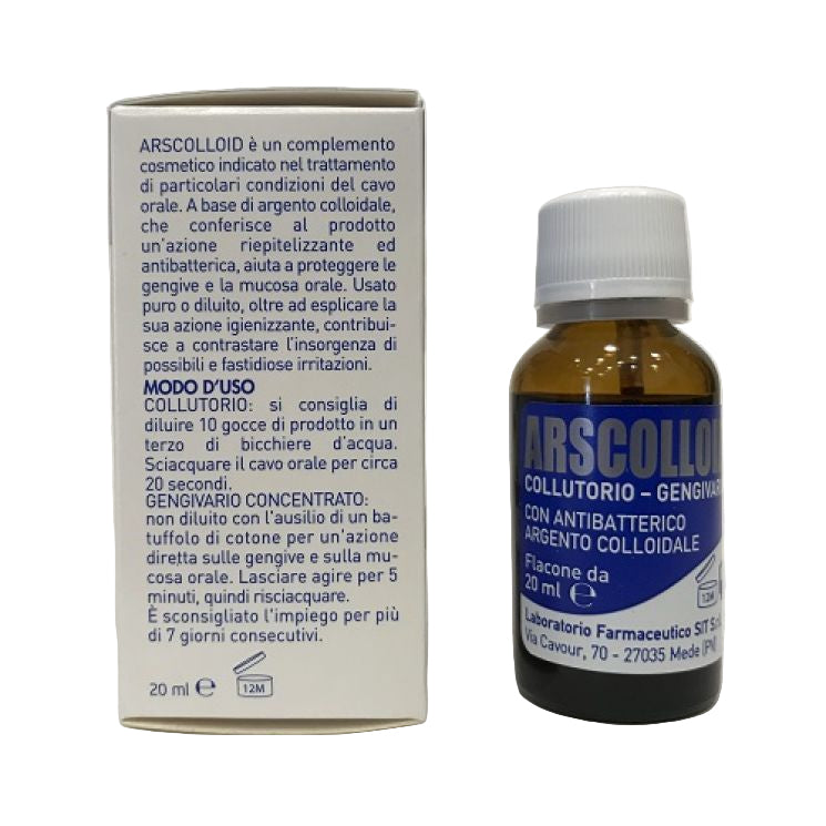 Arscolloid Collutorio Gengivario 20ml è un complemento cosmetico indicato nel trattamento di particolari condizioni del cavo orale.