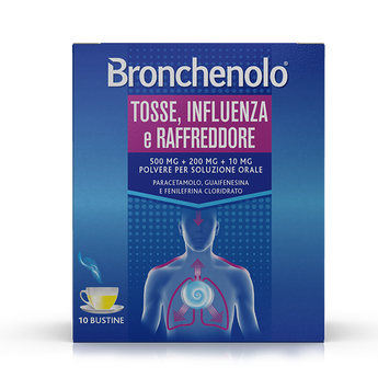 Bronchenolo Tosse, Influenza e Raffreddore 500 mg+200 mg+10 mg polvere per soluzione orale