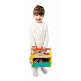 - Include: 30 pezzi di legno assortiti tra cui 1 cacciavite e 1 chiave inglese,1 martello, tavolette, ingranaggi, viti, chiodi,