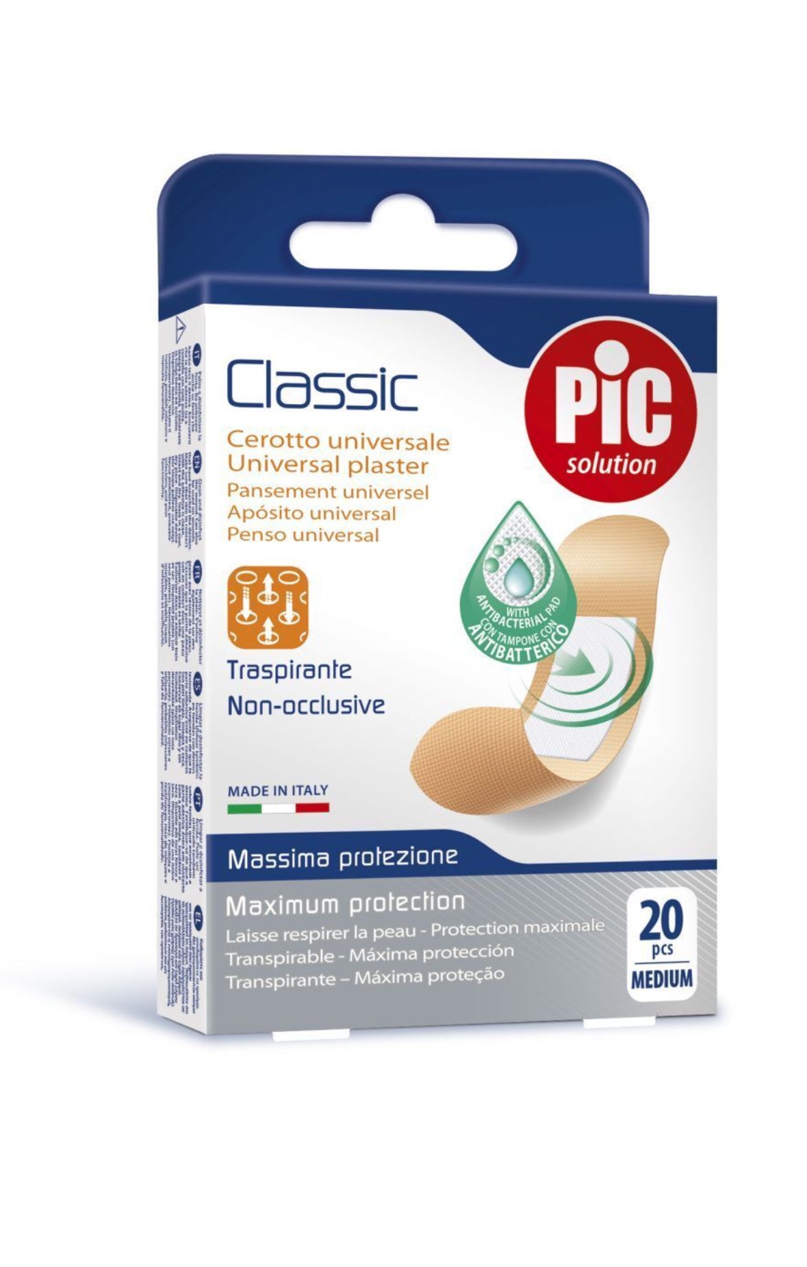 Cerotto universale con tampone con antibatterico (Clorexidina) traspirante e resistente.