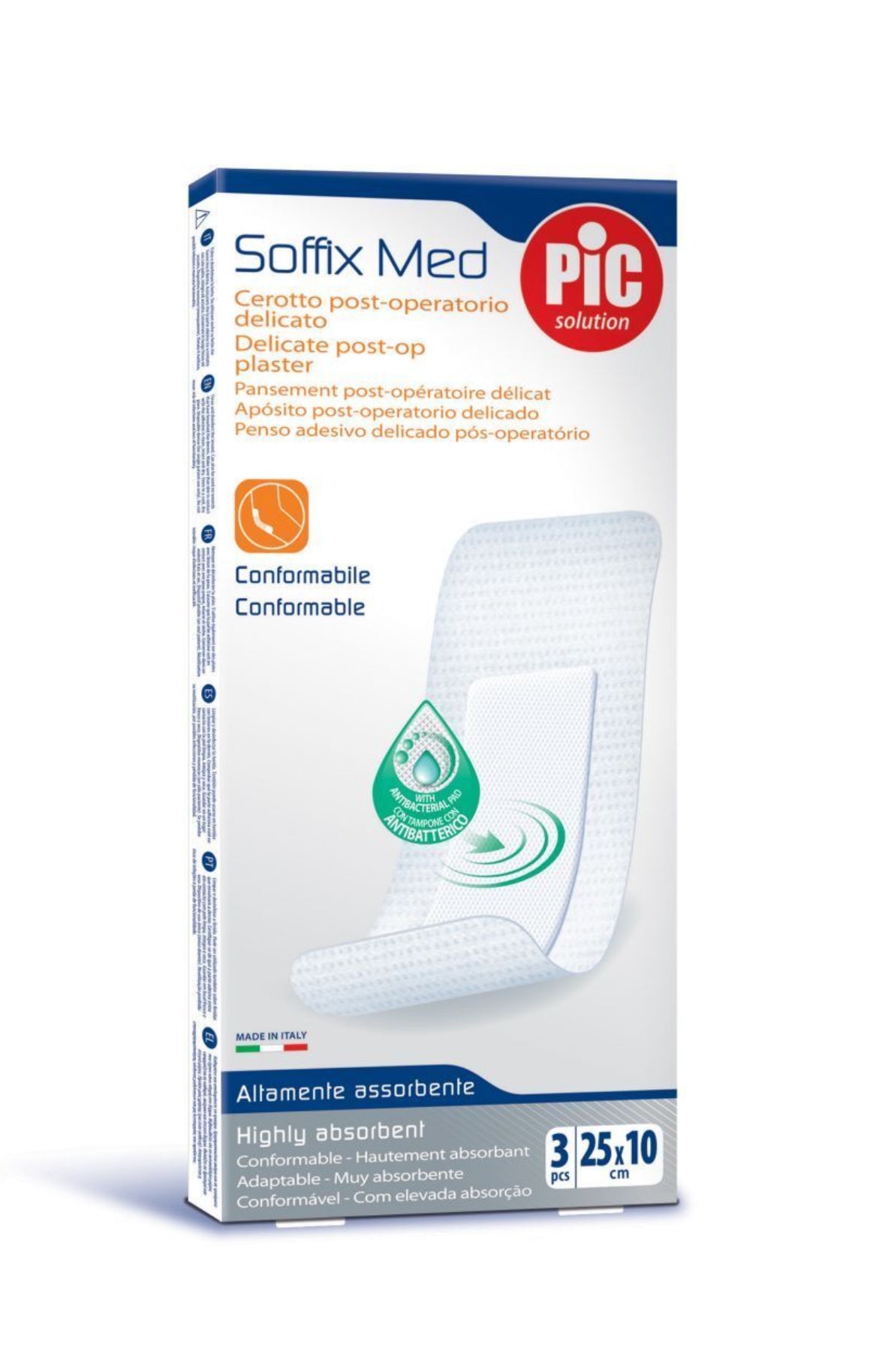 Medicazione in tessuto non tessuto per ferite chirurgiche ed estese con tampone con antibatterico (Clorexidina). Traspirante e altamente assorbente. Protegge la ferita dai rischi di infezione, grazie all’azione ad ampio raggio della Clorexidina. Cerotto post operatorio conformabile, morbido e traspirante pensato apposta per le pelli più sensibili e delicate. Facilità di rimozione: grazie alla pellicola microforata antiaderente presente sul tampone.