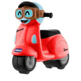 Mini vespa, adatta ai bambini più piccoli,che amano le moto, il colore del giocattolo è di un rosso acceso e il manubrio è caratterizzato da una espressione divertente.