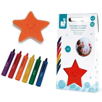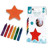 In questo kit sono contenuti sei pastelli e una spugna a forma di stella marina per disegnare sulle piastrelle.