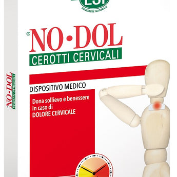 Cerotti particolarmente indicati come protettivi dell'area cervicale quando affetta da dolori muscolari, articolari e contratture di varia natura (dolori reumatici, dolori muscolari e torcicollo). L'utilizzo del cerotto favorisce un leggero incremento della temperatura nell'area di applicazione. Il cerotto contiene sostanze naturali quali arnica montana, artiglio del diavolo, salice bianco, arancio amaro ad azione idratante, emolliente e protettiva che rendono meno fastidiosa la rimozione del cerotto ed evitano spiacevoli irritazioni. Per donare una piacevole profumazione sono stati inseriti anche oli essenziali di lavanda e canfora. La speciale tecnologia garantisce l'azione di NO-DOL cerotti cervicali per 24 ore.