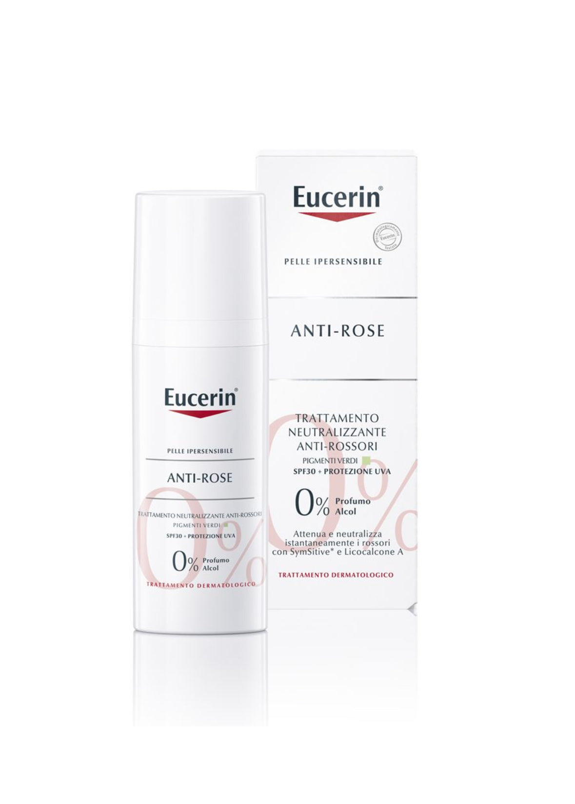 Eucerin AntiROSE Trattamento Giorno Neutralizzante FP25 è stato specificamente sviluppato per la pelle ipersensibile ed incline alla Rosacea/Couperose. Applicato dopo la detersione, calma immediatamente le irritazioni e copre il rossore visibile.