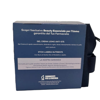 Kit contenente gel crema uomo, stick labbra nutriente e beauty in omaggio.