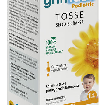 Dispositivo Medico di classe IIa.Indicato per il trattamento della tosse, sia secca che grassa, di bambini a partire da 1 anno di età. Svolge una fisiologica azione protettiva e lenitiva sulle prime vie respiratorie.