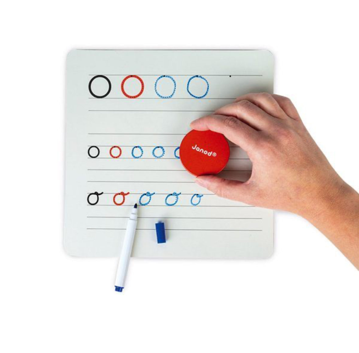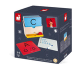 Giocattolo didattico ideale per scoprire le lettere dell’ alfabeto (maiuscole, minuscole, stampatello) in modo divertente! Una scheda fronte/retro in cartone rigido per ciascuna lettera.Sul fronte appare la lettera in rilievo per stimolare il tatto e frecce che indicano il senso di scrittura, e mentre la superficie cancellabile sul retro permette di allenarsi a scrivere la lettera seguendo il modello.