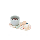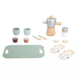Che ne dici di una tazzina di caffè? Gusta un buon caffè espresso insieme al tuo bambino con questo set di imitazione in legno. Sono inclusi 13 pezzi per fare colazione o concludere un pasto nel modo migliore: 1 vassoio con manici, 1 moka, 1 zuccheriera, 2 tazzine da caffè, 2 piattini, 2 cucchiaini, 2 biscotti e 2 tipi di caffè (espresso e macchiato). Ideale per imitare i grandi durante la colazione, giocare al ristorante o servire il caffè ai propri peluche, questo adorabile set da cucina conquisterà tutta la famiglia! Versa il caffè, disponi le tazzine sui piattini, aggiungi un delizioso biscotto e appoggia tutto sul vassoio. Tutto l'occorrente per stimolare l'immaginazione e soddisfare i bambini dai 2 anni in su che desiderano imitare i grandi. Con il suo look intramontabile e il motivo a terrazzo, questo servizio da caffè in legno FSC® è perfetto per condividere un momento di relax con tutta la famiglia.