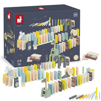 Il domino è un gioco classico e senza tempo. Scopri il gioco del domino Sweet Cocoon: composto da 100 pezzi di legno e con i suoi colori di tendenza, questo gioco permetterà al tuo bambino dai 3 anni di creare percorsi disseminati di ostacoli e sviluppare la sua immaginazione. Un numero infinito di combinazioni possibili! Un ponte, un mulino, una bandiera, una campana, una pendenza e un mulinello sono inclusi per animare il percorso. Questo gioco promette memorabili momenti di condivisione e risate con la famiglia o gli amici, ed è anche educativo: ideale per esplorare il rapporto di causa ed effetto, si può usare il domino per evidenziare questa nozione e mostrare al bambino che qualsiasi azione ha conseguenze. Ci vorrà pazienza e meticolosità per sistemare tutte le parti... e abbatterle tutte!
