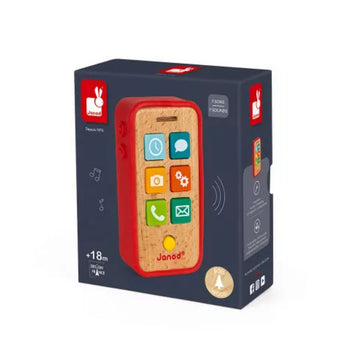 Janod Telefono sonoro per bambini (in legno), gioco di imitazione, per bambini dai 18 mesi in su