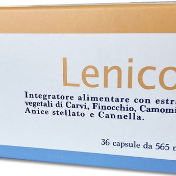Integratore alimentare con estratti vegetali di carvi, finocchio, camomilla, anice stellato e cannella.