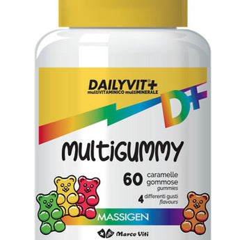 Integratore alimentare per bambini dai 4 ai 14 anni che contiene vitamine A, C, E, D, niacina, biotina, B12, B6 e acido folico. Senza coloranti. È indicato nei casi di ridotto apporto con la dieta o di aumentato fabbisogno fisiologico.