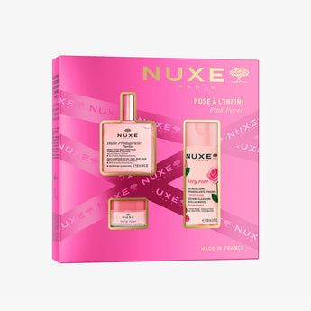 Cofanetto contenente: 1 Huile Prodigieuse Florale 50 ml, 1 Very Rose Acqua Micellare 3 in 1 100 ml e 1 Very Rose Balsamo Labbra 15 ml.