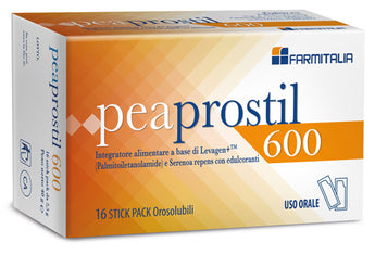 Integratore alimentare di Levagen+ (palmitoiletanolamide) e Serenoa repens, con edulcoranti.