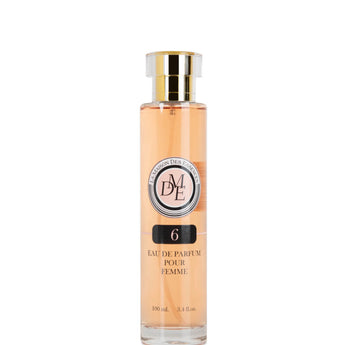La fragranza 6, della collezione di prodino donna La Maison Des Essences, è caratterizzata dal bilanciamento di tre famiglie olfattive, che formano un armonioso unicum, perfettamente equilibrato. Nelle note di testadel profumo, infatti, spiccano le essenze olfattive dolci della famiglia fruttata, che si sposano col prolungarsi dell’odorosità in un connubio con elementi delle famiglie floreale e cypres. La consistenza della fragranza è sostenuta dalla robustezza delicata delle note di fondo, dove dominano elementi della famiglia orientale, come la vaniglia, e boises, come il patchouli.