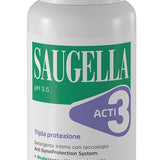 Saugella Acti3 è utilizza la tecnologia Acti GyneProtection System ideata da Saugella. La sua formula è testata clinicamente e scientificamente per assicurare una triplice protezione. L'estratto di timo (Thymus vulgaris), un antibatterico naturale, e lo zinco (zinc coco-sulfate) svolgono un'efficace azione sinergica e protettiva anche nelle situazioni più a rischio. Inoltre, il mix bilanciato di bio-polimeri (complesso muco-adesivo) contenuti in Saugella Acti3 crea un film invisibile sull'epitelio vulvare prolungandone l'efficacia nel tempo. La sua formula è scientificamente testata per non alterare l'epitelio vulvare e per aiutare il mantenimento della corretta idratazione. Aiuta a mantenere o ripristinare il pH dell'area vulvare, che rappresenta una barriera protettiva naturale.