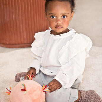 Questa soffice palla allegramente colorata si fa manipolare facilmente dalle manine. I materiali, i buchi ed il suono allegro stimolano i sensi. I bambini possono inoltre sviluppare i loro talenti per buttare o calciare la palla in tutta sicurezza.