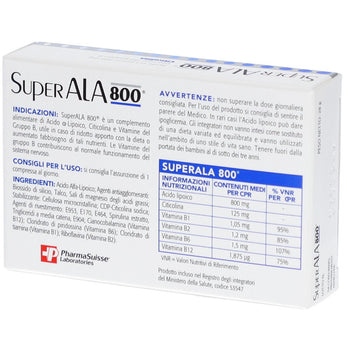 Integratore alimentare di Acido lipoico ad alto dosaggio (800 mg), Citicolina e Vitamine del gruppo B; agisce in modo specifico sui tessuti nervosi, assicurando una potente azione antiossidante, neurotrofica e neuroprotettiva. Formulazione retard.Ingredienti