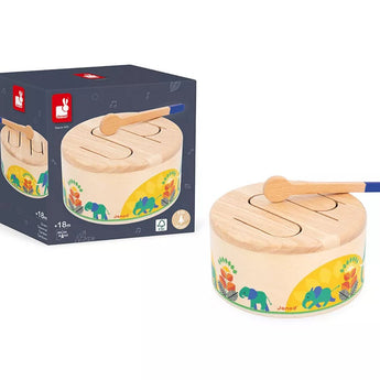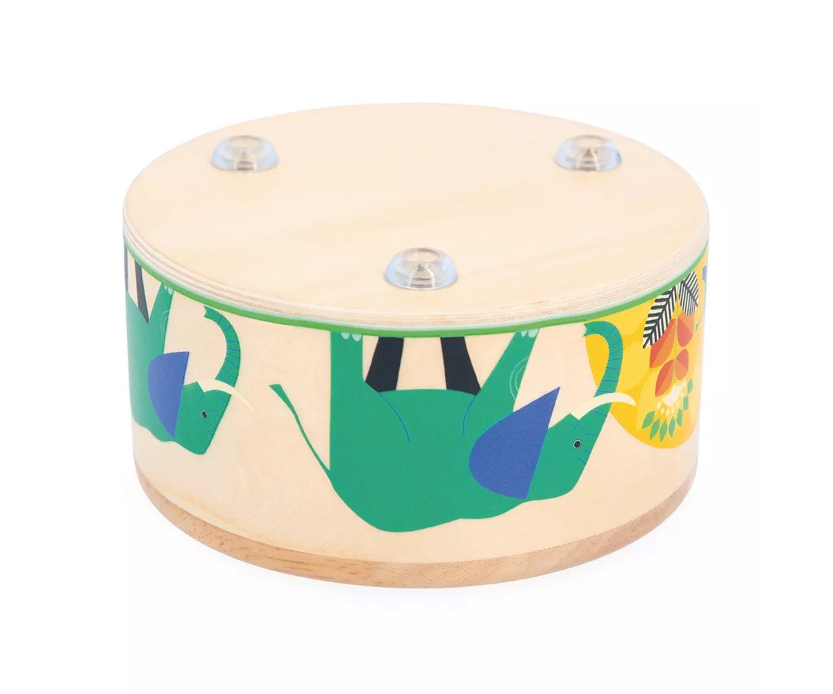 Questo tamburo della gamma Janod Gioia è ideale per iniziare a suonare ed apprezzare la musica e il ritmo. Con le mani o la bacchetta puoi imitare gli adulti e sperimentare la relazione causa effetto, sviluppare l'acutezza uditiva, la motricità e la coordinazione.