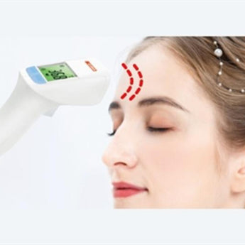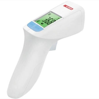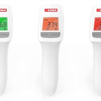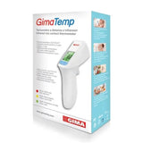 Termometro No Contact GIMATEMP - Italiano, Inglese, Francese, Spagnolo - Elevata previsione e rapidità di misurazione in =2-3 sec - schermo retro illuminato a 3 colori (rosso, giallo, verde) per indicare la presenza di febbre - distanza di misurazione 1-5 cm - 50 memorizzazioni