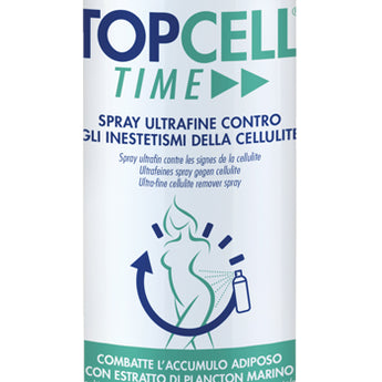 DESCRIZIONE: TOPCELL®TIME è una lozione cosmetica fine e attiva contro gli inestetismi della cellulite. L'estratto di Plancton Marino combatte l'accumulo adiposo e il rilassamento dei tessuti cutanei. Ingredienti di origine naturale tecnologicamente avanzati favoriscono il rimodellamento della silhouette promuovendo l'elasticità della pelle. La speciale ed innovativa tecnologia BOV, consente un'applicazione a 360° che raggiunge facilmente tutte le zone critiche affette da cellulite. Grazie alla speciale erogazione uniforme e ultra light permette di rivestirsi subito dopo l'applicazione.