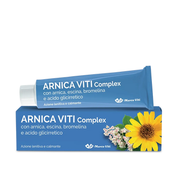 Arnica Viti Complex è un coadiuvante cosmetico che sfrutta le proprietà lenitive e protettive dell'arnica associata a escina, bromelina e acido glicirretico. Questi ingredienti sono utilizzati in fitoterapia per dare una sensazione di sollievo in seguito a piccoli traumi e contusioni. A rapido assorbimento.