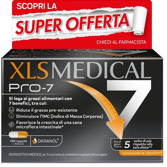 XLS MEDICAL PRO-7 ha caratteristiche di sicurezza e tollerabilità certificate. Non è un pasto sostitutivo.