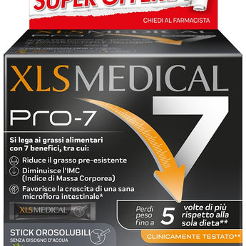XLS MEDICAL PRO-7 ha caratteristiche di sicurezza e tollerabilità certificate. Non è un pasto sostitutivo.